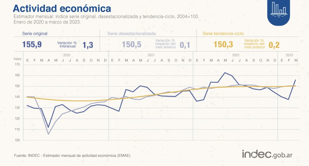 De esta forma, en el primer trimestre del año, el Estimador Mensual de la Actividad Económica (EMAE) registró un incremento de 1,5% en relación a igual período del año pasado.