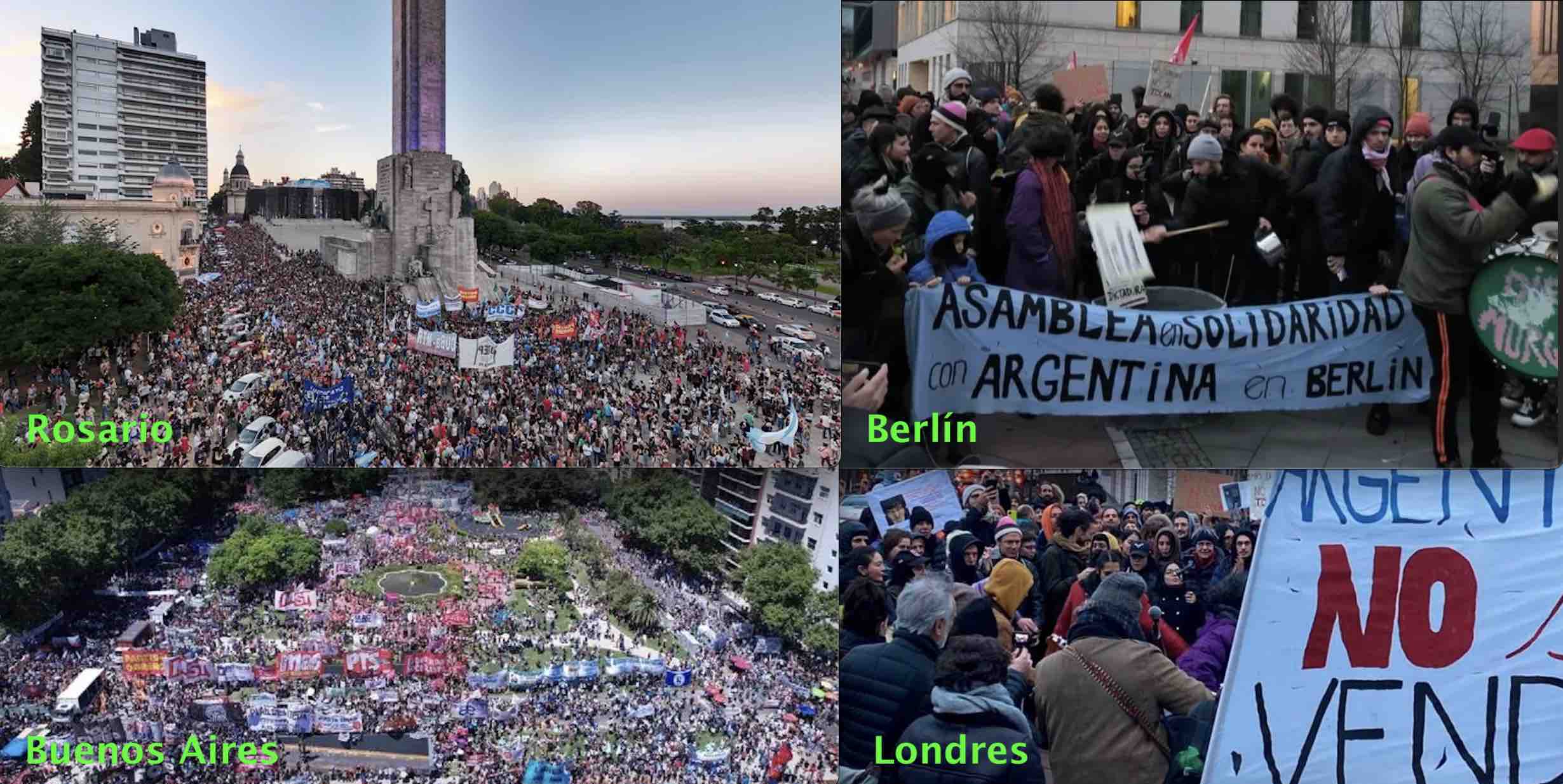 El paro general del miércoles no ocurrió únicamente en Argentina, ya que distintos sindicatos, organizaciones sociales y argentinos residentes en el exterior se movilizaron, en forma de apoyo, en varias ciudades de Latinoamérica y Europa contra las medidas económicas del Gobierno, con el rechazo a la ley Ómnibus, el DNU y el avance de la derecha en el país.