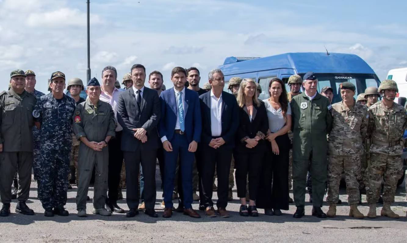 El ministro de Defensa, Luis Petri, el gobernador de Santa Fe, Maximiliano Pullaro, y el intendente de Rosario, Pablo Javkin, recibieron el martes los recursos materiales -sobre todo de transporte- y humanos y pusieron en marcha de manera oficial la colaboración militar en el combate contra el narcotráfico en Rosario, junto a los cuatro jefes militares principales del país: el brigadier general Xavier Isaac (Estado Mayor Conjunto), el general de brigada Carlos Presti (Ejército), el contraalmirante Carlos Allievi (Armada), y el brigadier mayor Fernando Mengo (Fuerza Aérea).