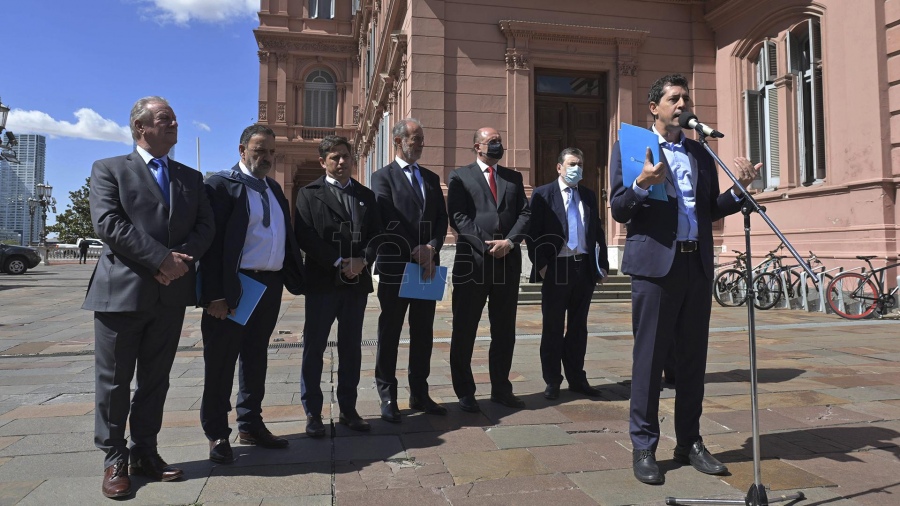 En ese contexto, los gobernadores firmaron una nota dirigida al máximo tribunal, que será entregada mañana a la Corte por el ministro del Interior, Eduardo "Wado" de Pedro, cuando brinde su informe semanal sobre la marcha de las negociaciones enmarcadas en las audiencias de conciliación con la Capital Federal.