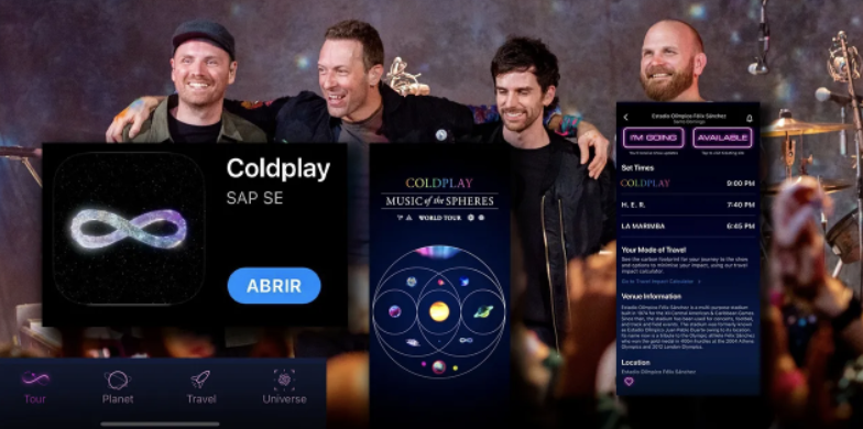 Para esta causa, Coldplay creó una aplicación especial que ayudará a sus fanáticos que los acompañan en su gira mundial. El propósito de la app consiste en planificar rutas de viaje que sean sustentables y bajas en carbono. La aplicación Music Of The Spheres World Tour, y fue lanzada por primera vez durante sus fechas en Centroamérica.